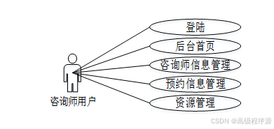 - 登录:咨询师用户由管理员添加,并且咨询师可以通过前台登录系统,以便进行在线咨询的回复。系统提供安全的认证机制,确保只有授权的咨询师可以访问其账户。
