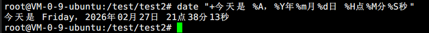 date "+今天是 %A,%Y年%m月%d日 %H点%M分%S秒"
