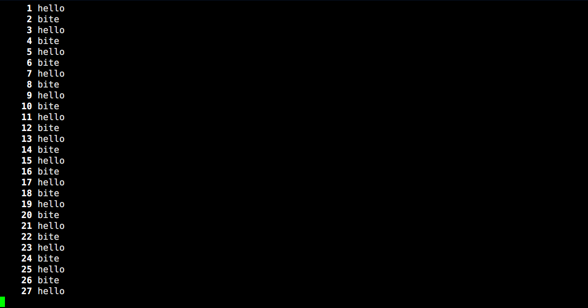 按键 作用 空格键/f向下翻一页 b向上翻一页 回车键向下翻一行 y向上翻一行 d向下翻半页 u向上翻半页 g跳转到文件第一行 G跳转到文件最后一行 /字符串向下搜索指定字符串 ?字符串向上搜索指定字符串 n重复上一次搜索(方向相同) N重复上一次搜索(方向相反) q退出 less