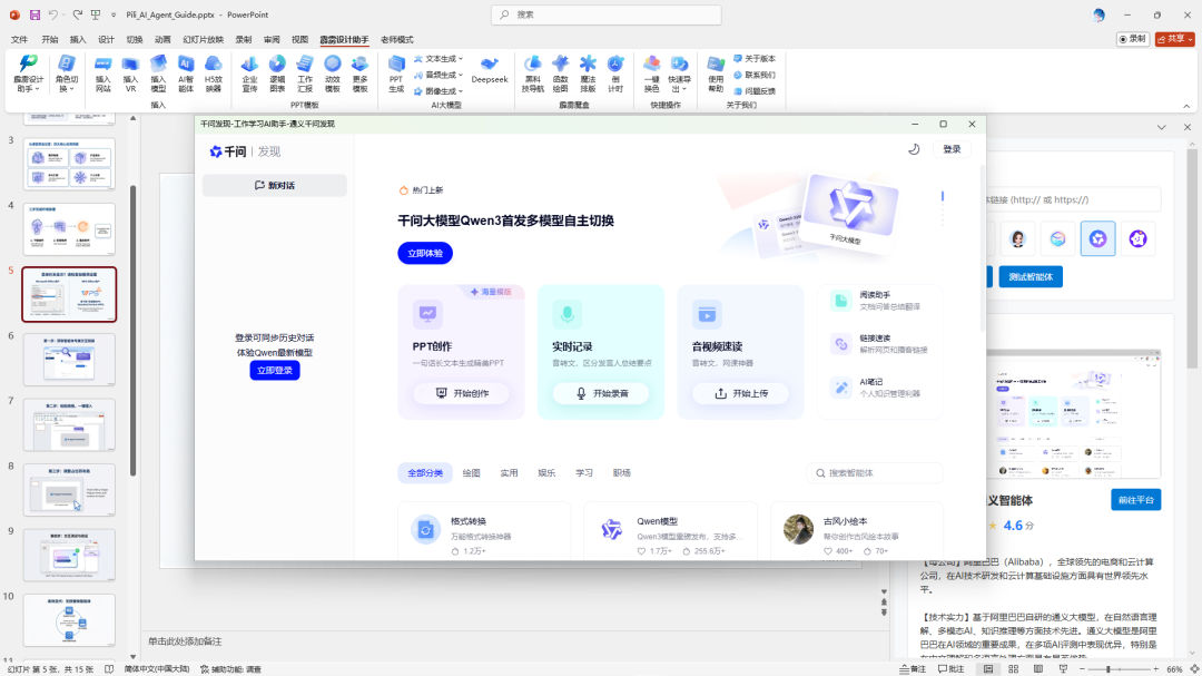 如何在PPT里面插入百度智能体,扣子空间,豆包智能体,阿里tbox,通义千问智能体,讯飞星辰智能体?霹雳设计助手支持 AI 智能体功能!