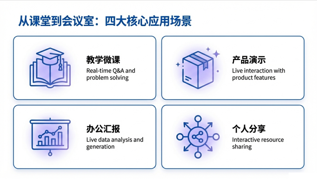 该功能的适用场景十分广泛,涵盖教学、办公、产品展示等多个领域: