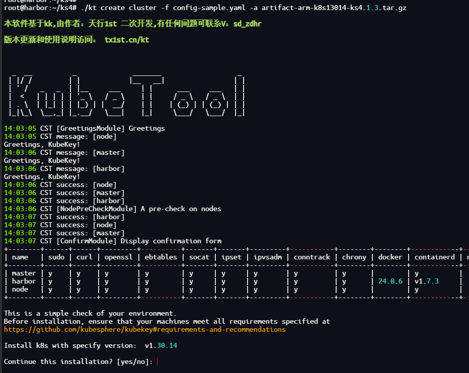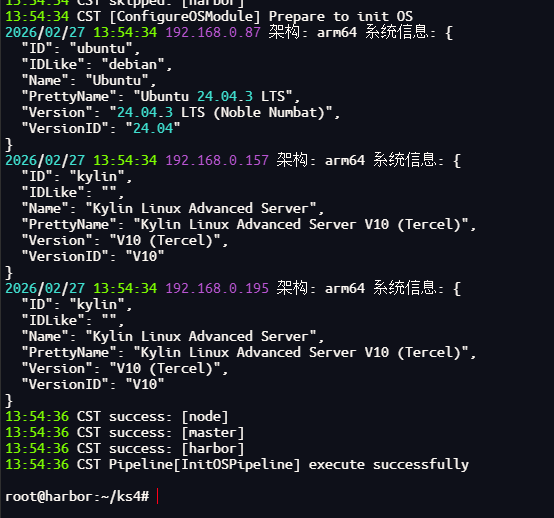 该命令kt会根据配置文件自动判断操作系统和架构以完成所有节点的初始化配置和依赖安装。