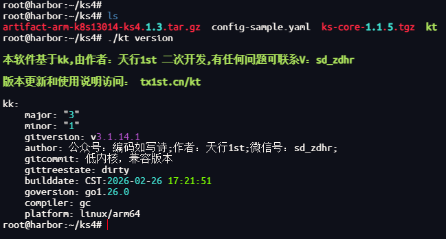 此命令kt会自动将离线制品中的镜像推送到harbor 私有仓库