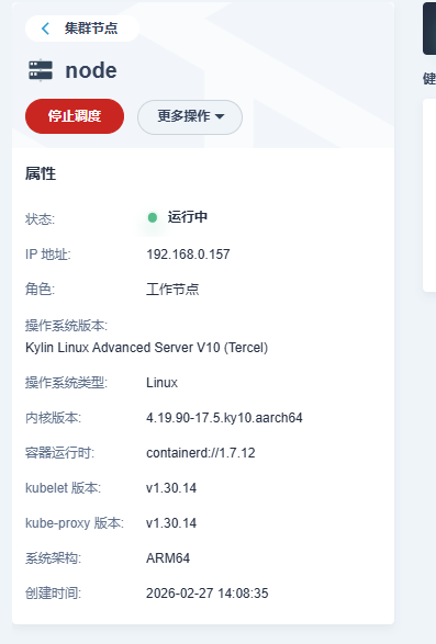 | node | arm64 | KylinV10 | 2核4G | 192.168.0.157 |