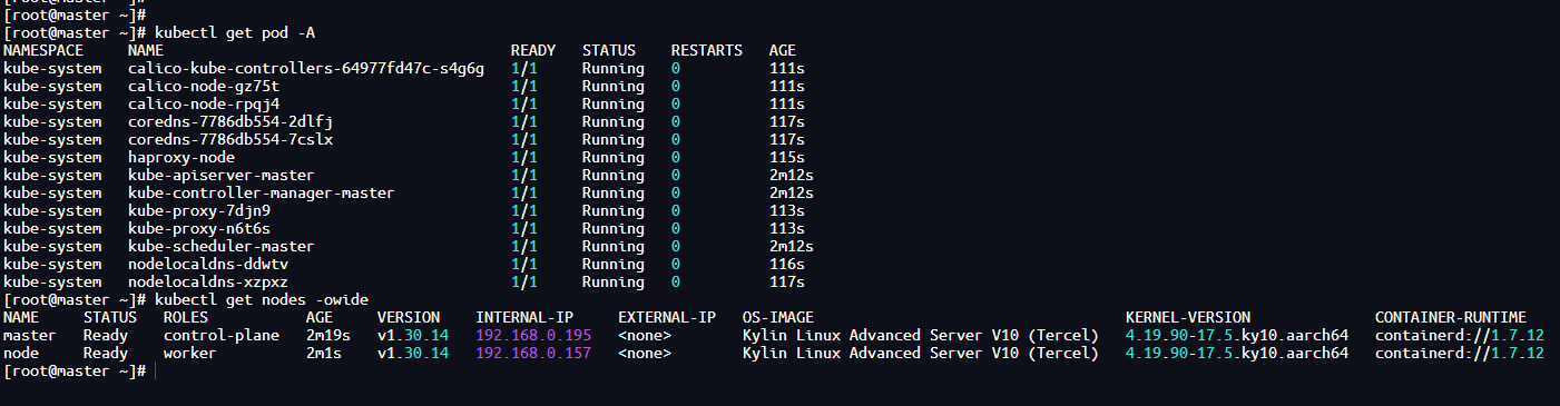 | master | arm64 | KylinV10 | 2核4G | 192.168.0.195 |