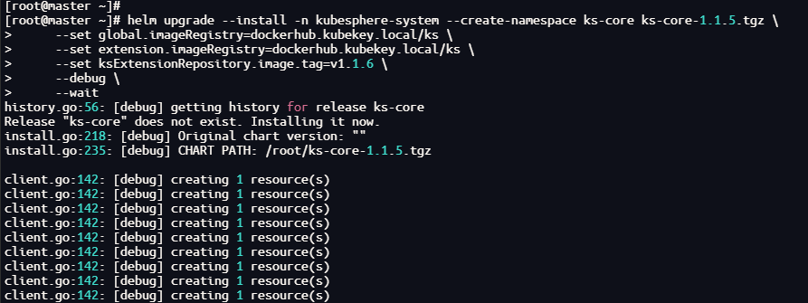 helm upgrade --install -n kubesphere-system --create-namespace ks-core ks-core-1.1.5.tgz \