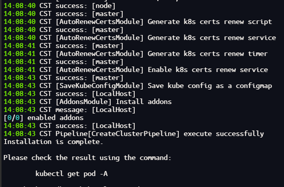 等待一段时间,可以看到安装成功的消息