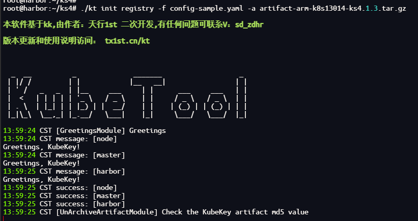 ./kt init registry -f config-sample.yaml -a artifact-arm-k8s13014-ks4.1.3.tar.gz