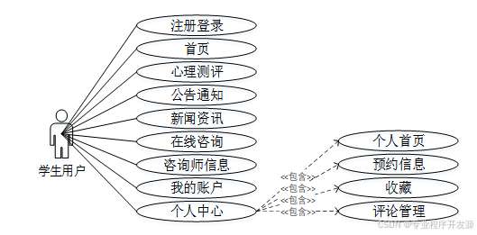 图3-1大学生心理健康智能咨询系统学生用户角色用例图