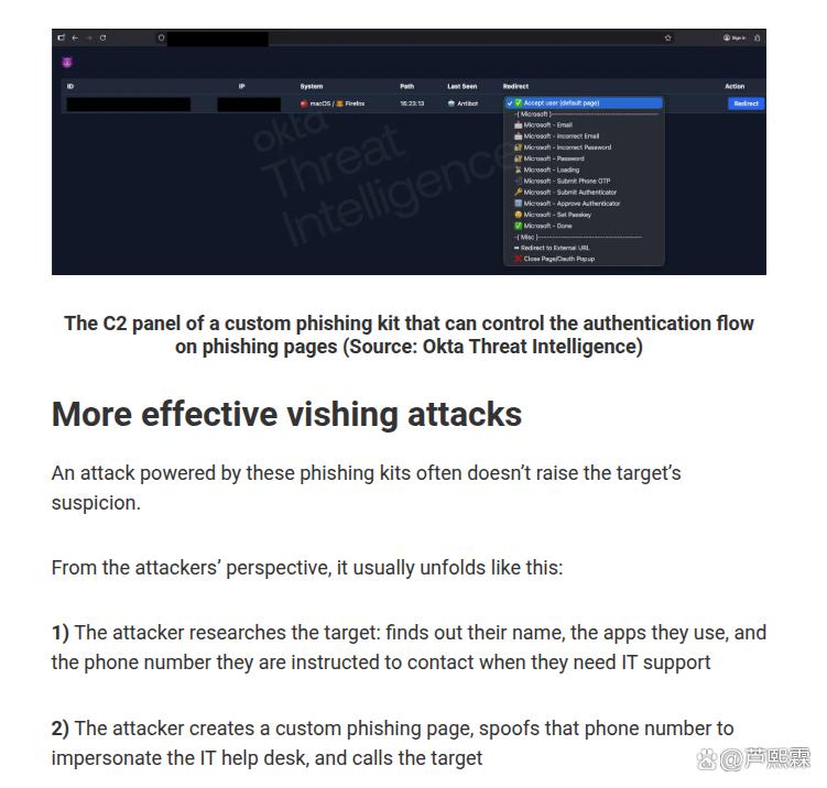 Okta的报告指出,此类攻击主要针对高权限用户(如系统管理员、财务人员、高管)。针对这类群体,攻击者会进行更深入的背景调查(OSINT),定制专属的话术和钓鱼场景。