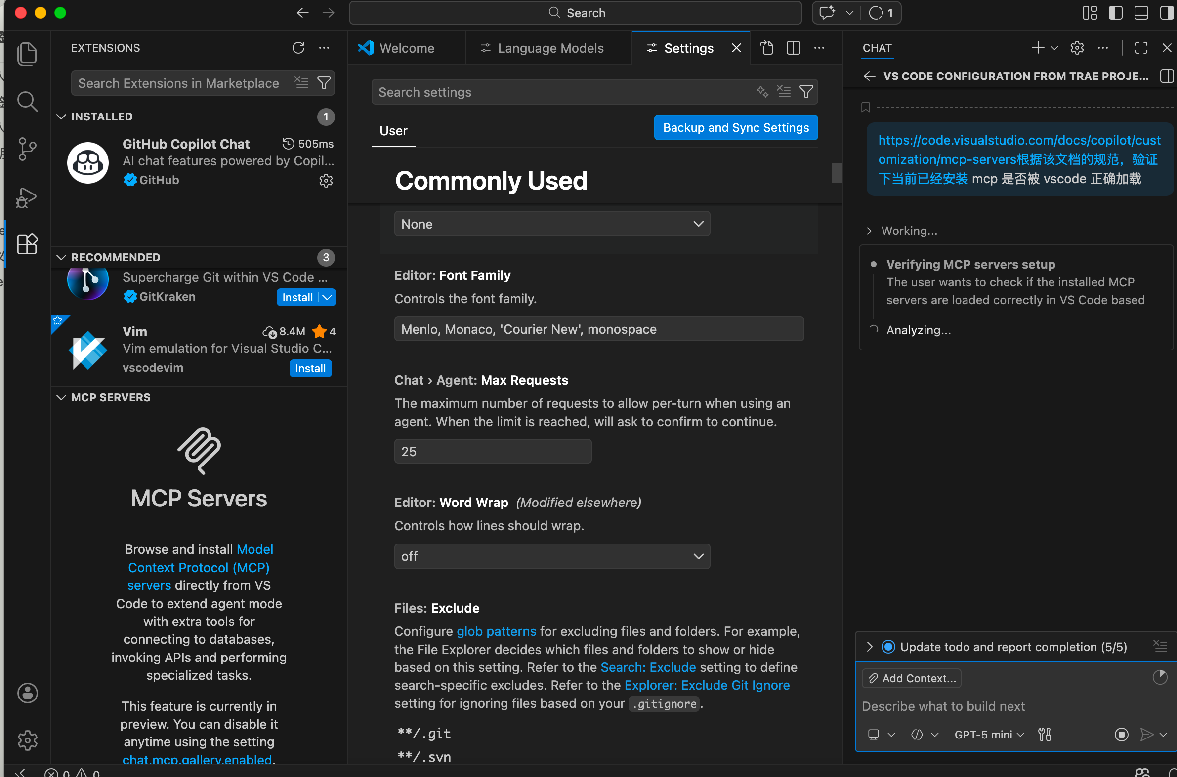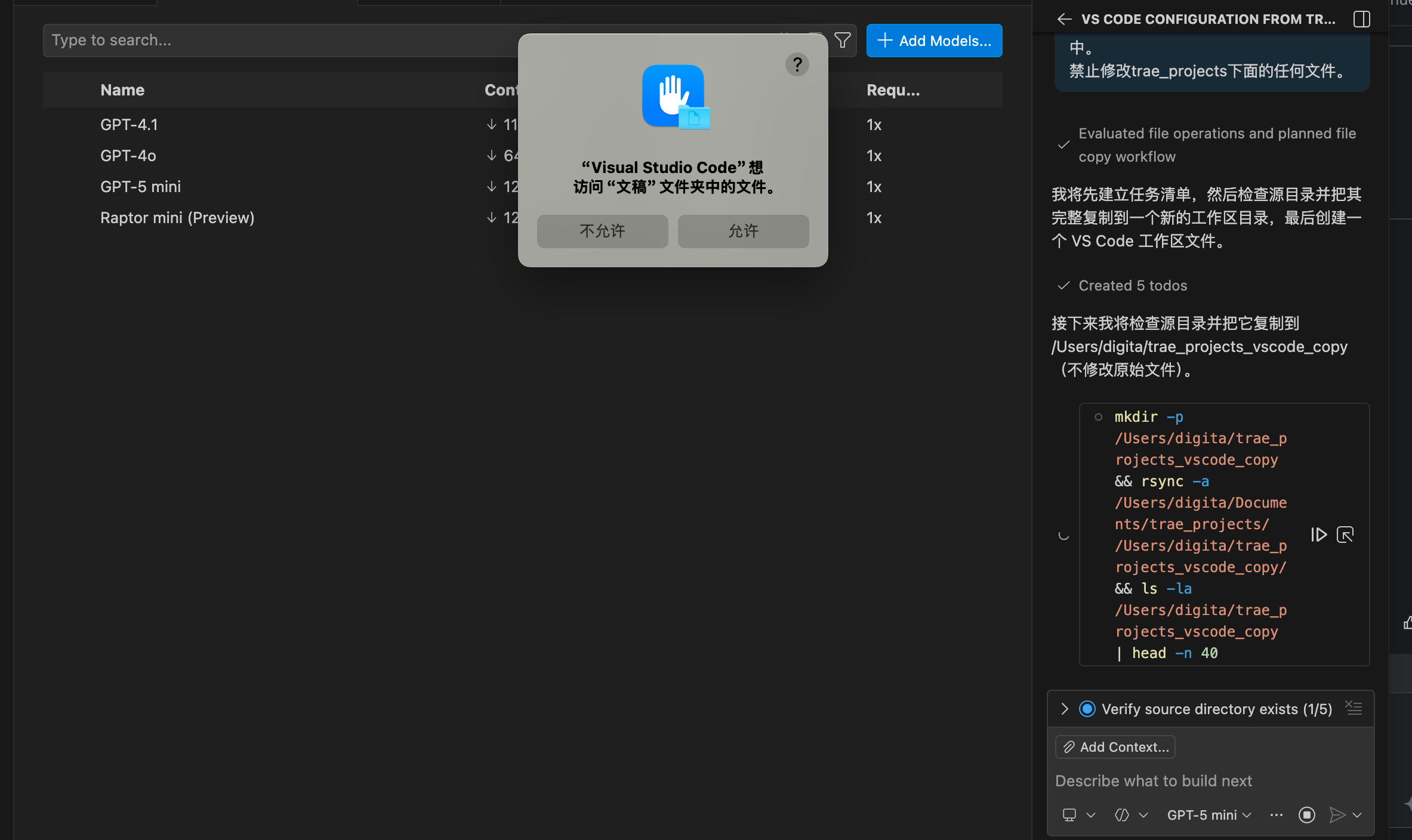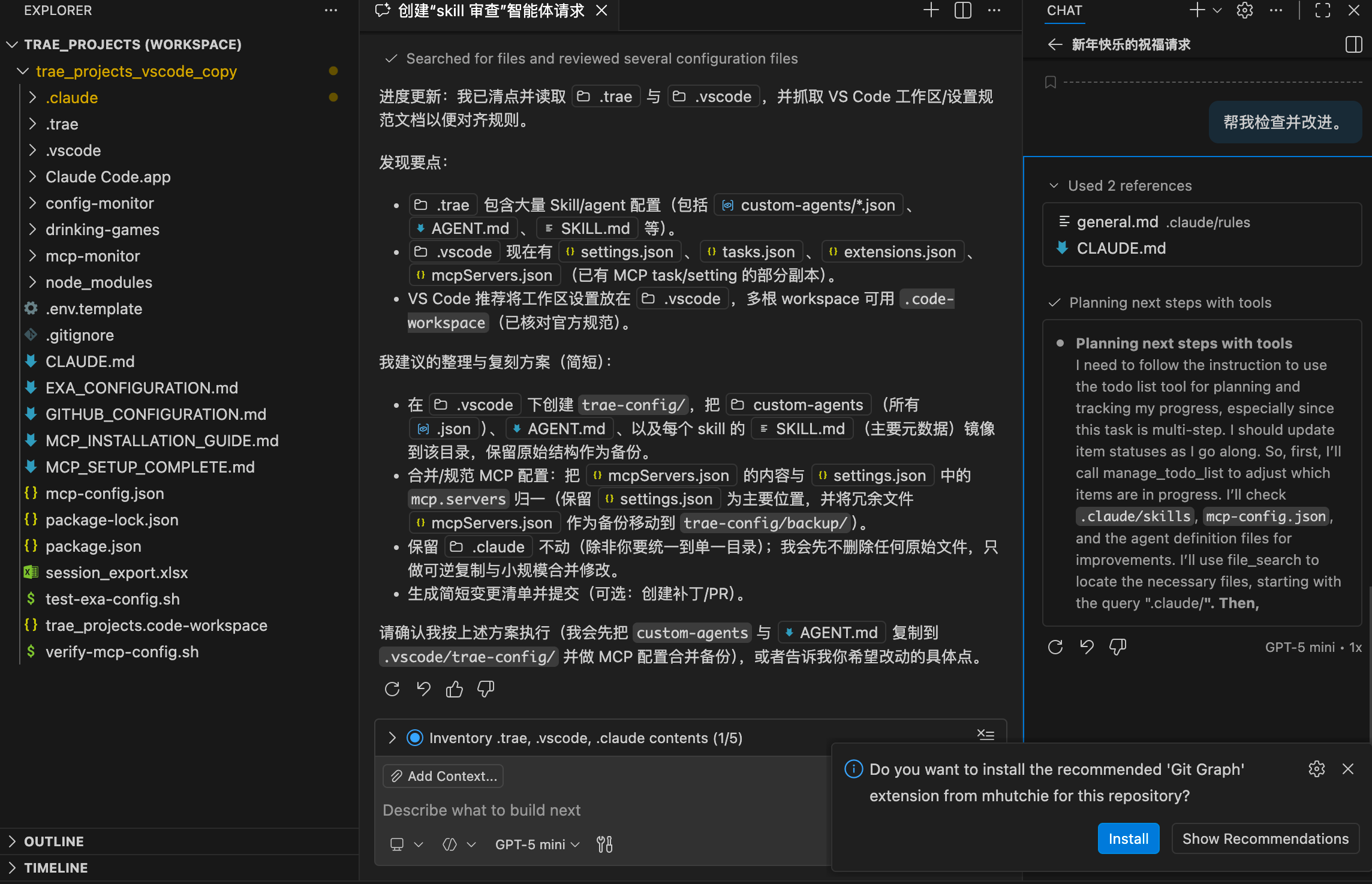 好在 VScode 有免费的额度,用的 GPT-mini 进行 trae 文件的 copy,最后出来的效果如下。