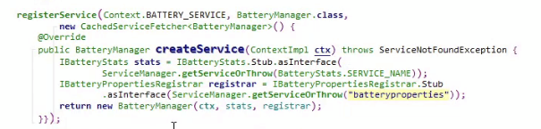 例如getSystemService实际上最终也是调用的binder 下面的是源码注册BatteryManager时把register(binder)对象返回出来