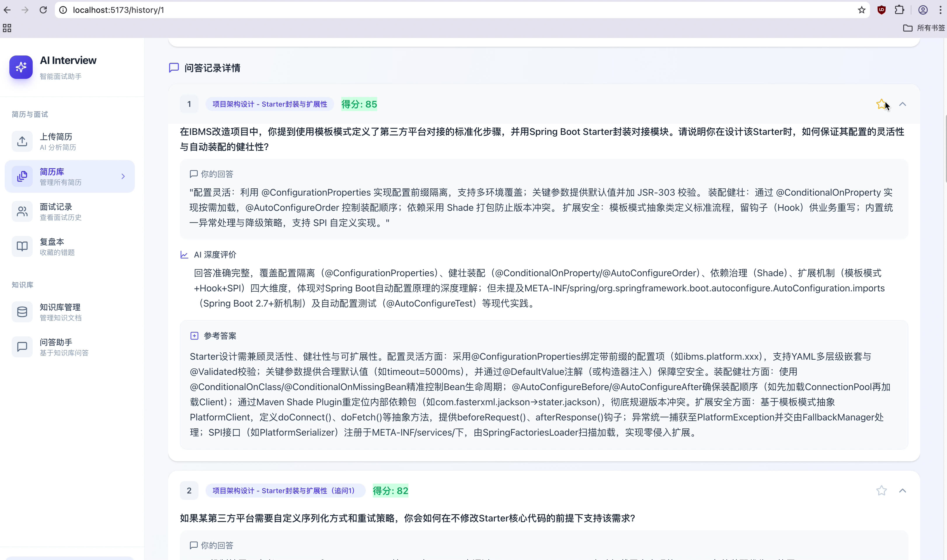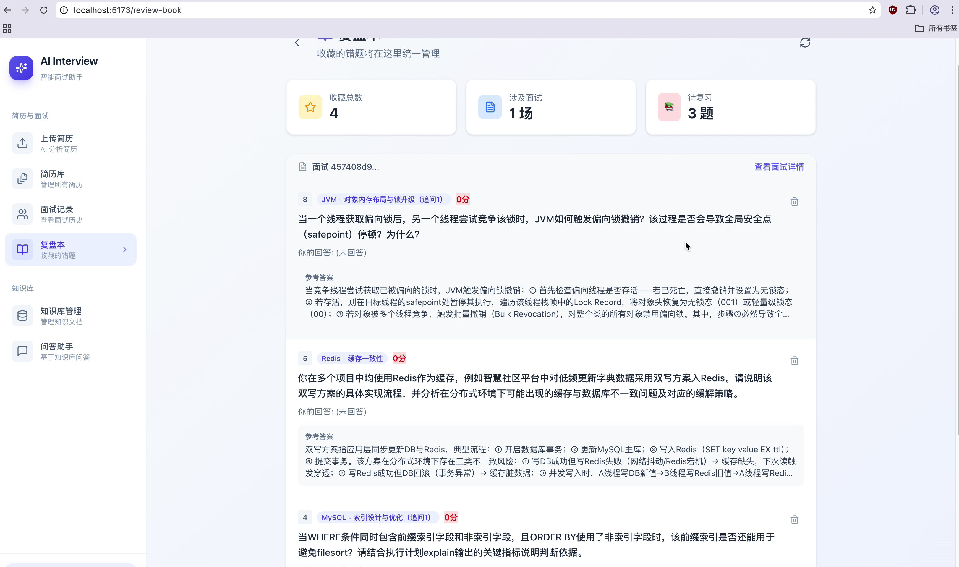 - 现有项目的深度重构:在我的AI 智能面试平台里,新增一个完整的"错题复盘"模块。