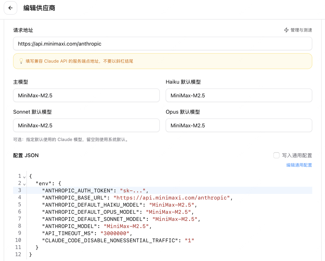 "ANTHROPIC_DEFAULT_SONNET_MODEL": "MiniMax-M2.5",