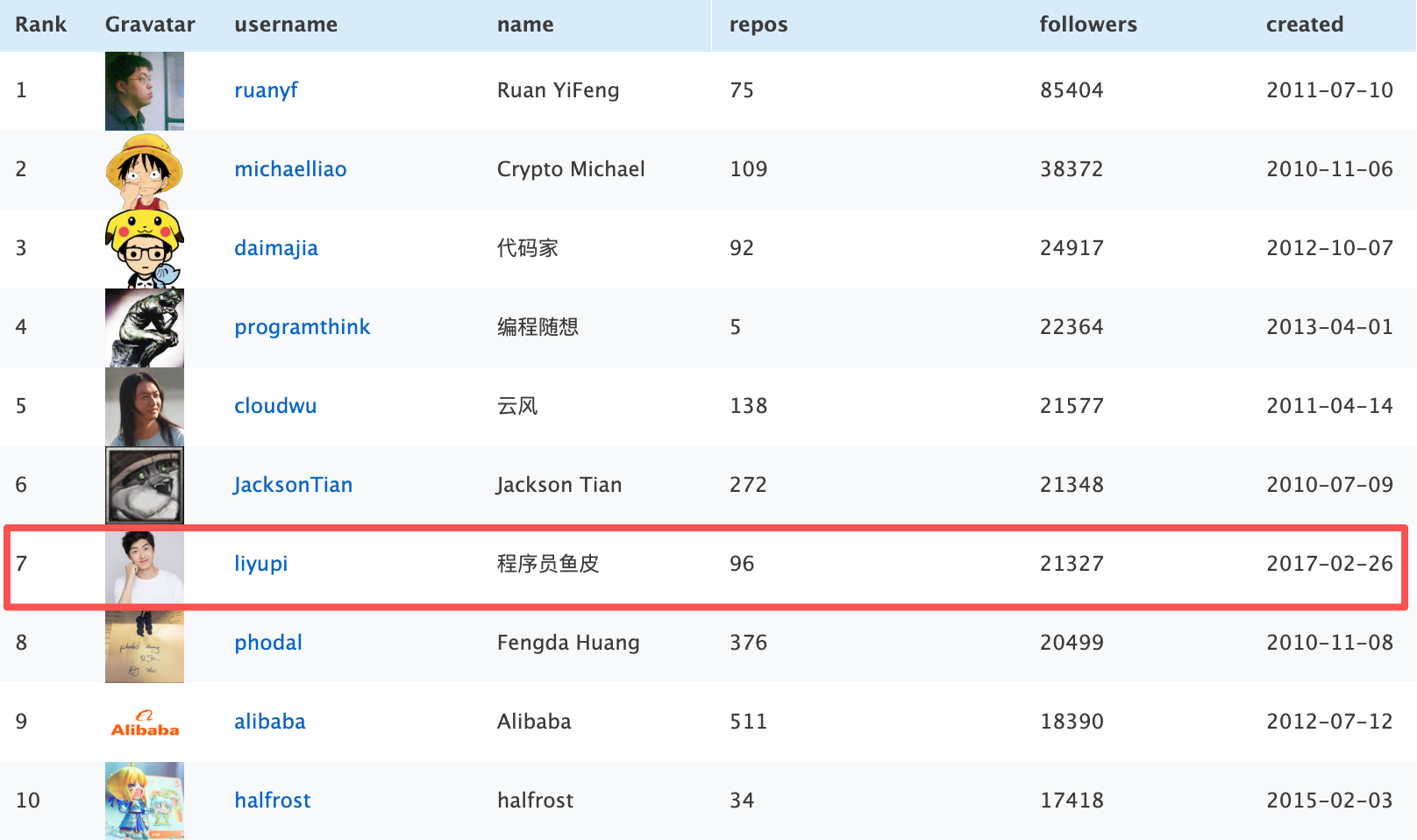 程序员朋友们都知道,你想在这个「没有粘性」的平台上获取关注者有多不容易。我的这个成绩,在 GitHub 中国区关注者排行榜中已经排到前 7 了,再往前都是元老级前辈。
