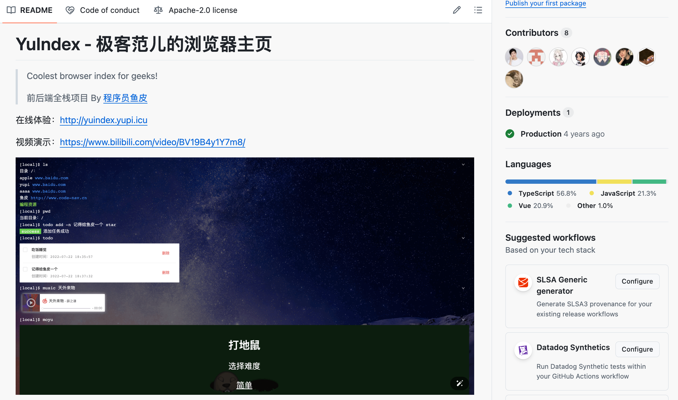 4)提供可体验的地址:光有代码不够,一定要部署一个在线 Demo 让别人直接体验。很多人看到一个项目,如果没有可以直接访问的地址,大概率就划走了,眼见为实嘛。