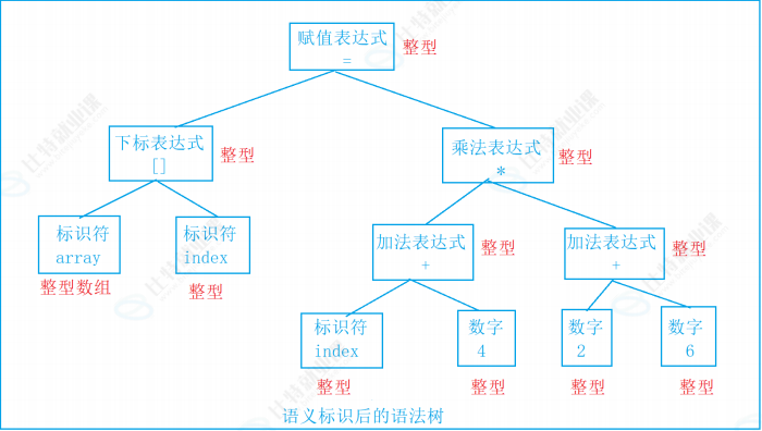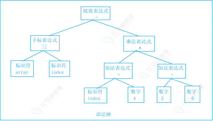 接下来语法分析器,将对扫描产生的记号进行语法分析,从而产生语法树。这些语法树是以表达式为节点的树。