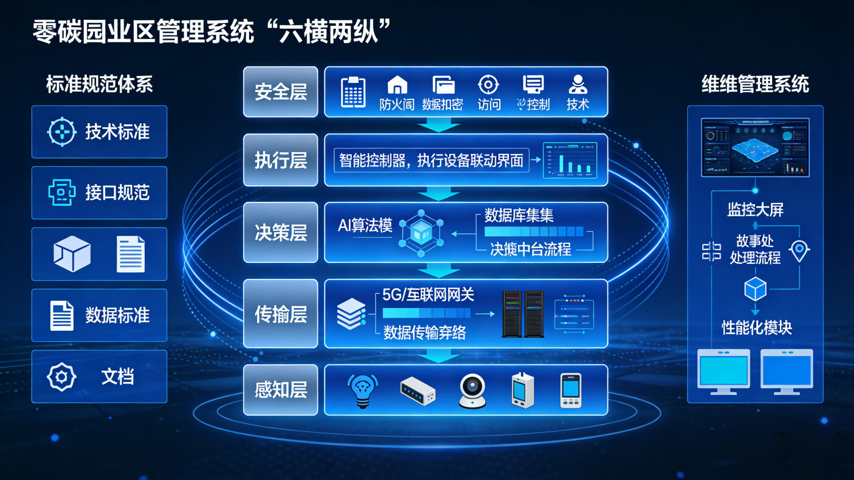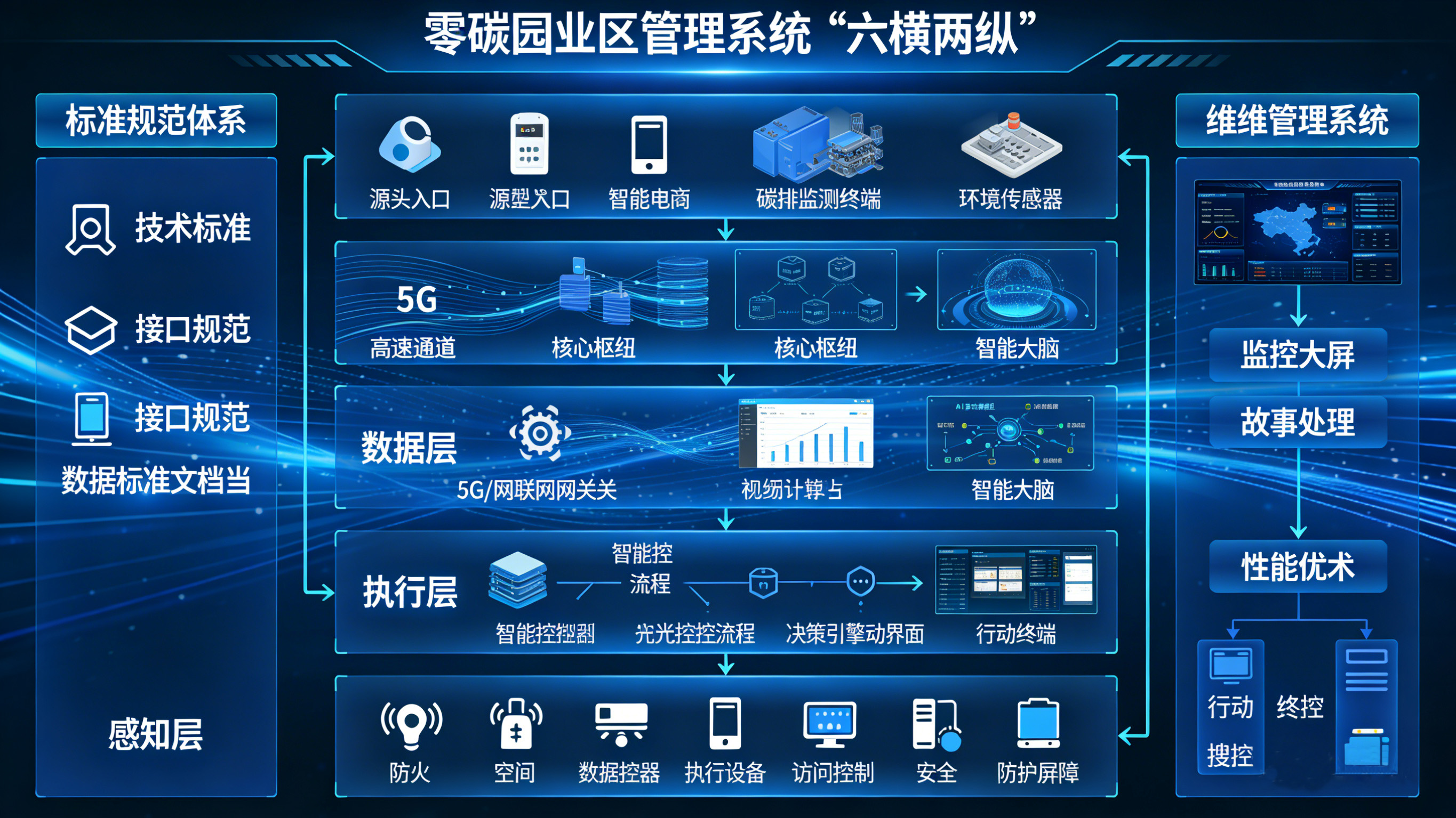 “六横”核心层级是系统技术架构的主体,各层级通过技术衔接实现数据的有序流转与价值转化,共同支撑零碳管理的核心需求。