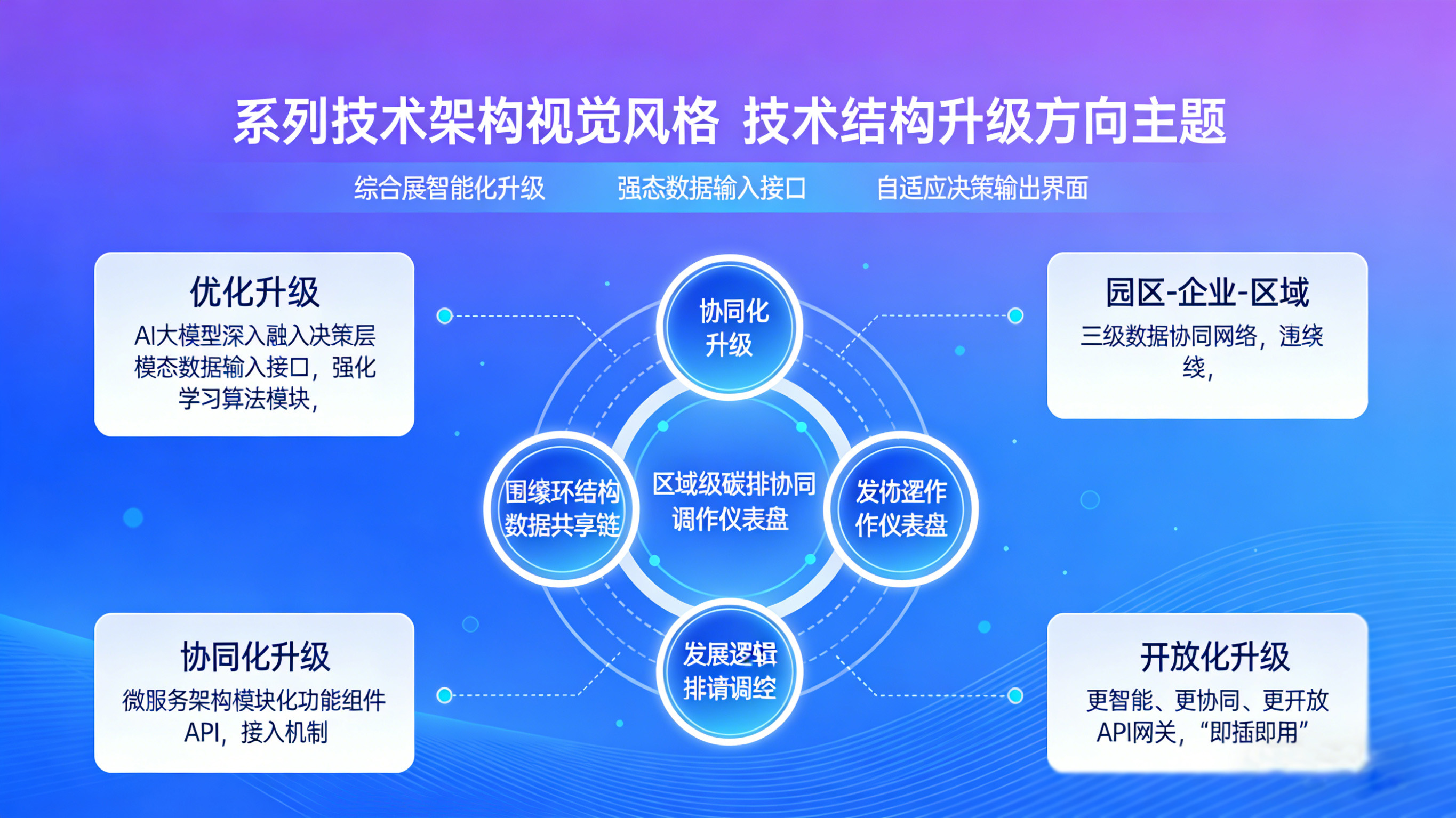 随着零碳技术与数字技术的迭代,管理系统技术架构将向“更智能、更协同、更开放”的方向升级。在智能化方面,AI大模型将深度融入决策层,实现从“场景化决策”到“全域自主决策”的跨越;在协同化方面,通过“园区-企业-区域”三级数据协同,实现零碳管理从园区内部延伸至区域层面;在开放性方面,架构将采用微服务设计,支持第三方技术与功能模块的快速接入,满足不同园区的个性化需求。