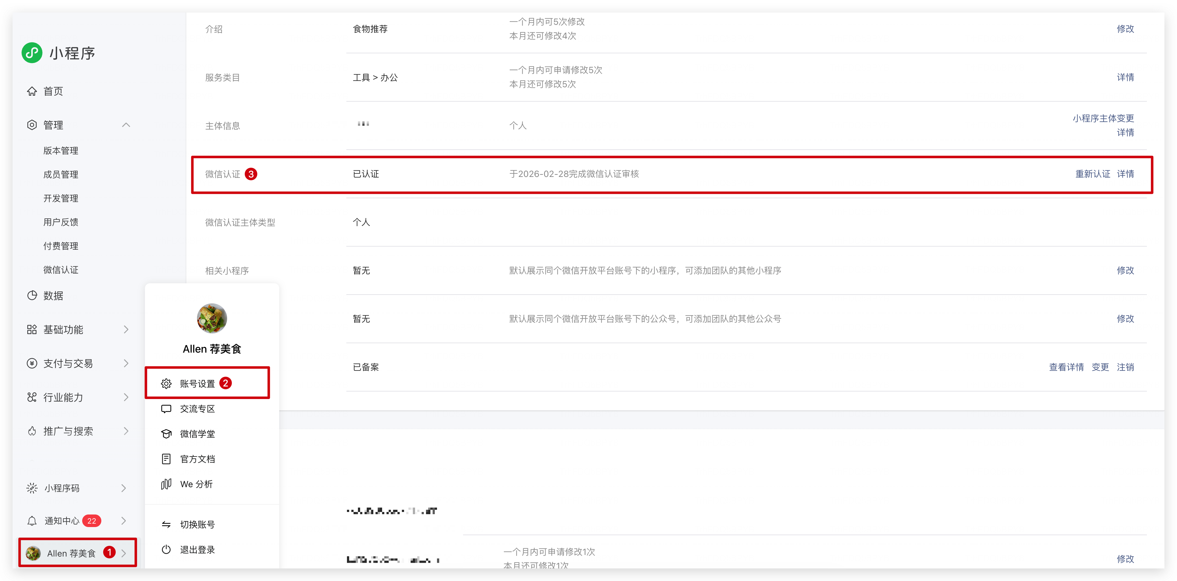 代码全部搞定后,为了让你的小程序能在微信里被真实用户搜到并使用,需要进行微信认证。 当时我就是在这里卡了很久,明明什么都弄好了为什么就是无法在微信搜索并使用这小程序。原来是没给微信交钱...