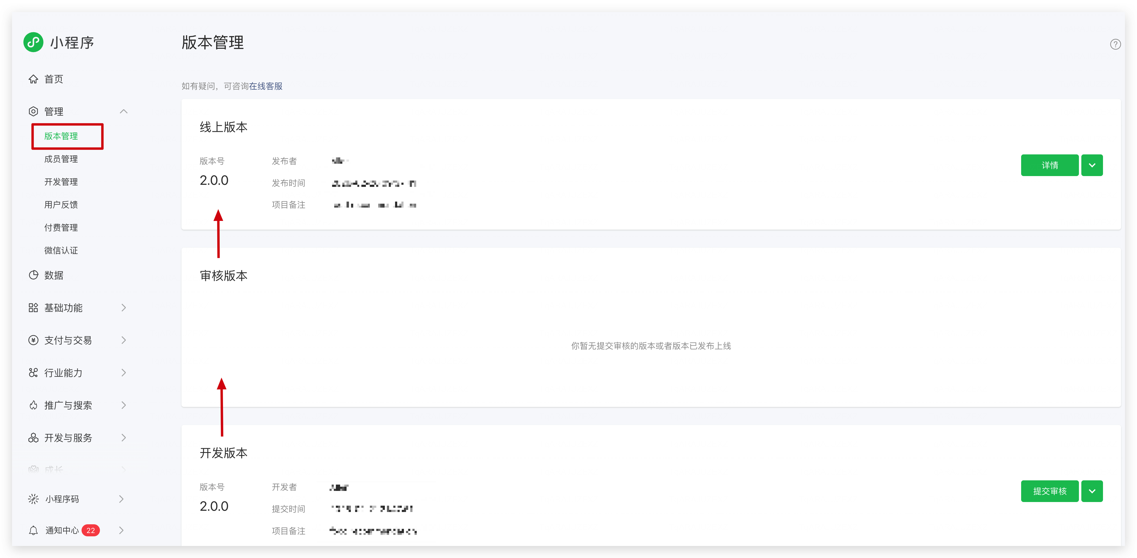 - 5.代码上线:代码上传后,到管理后台提交代码审核以及推上线。线上版本就是大家搜索使用的版本。