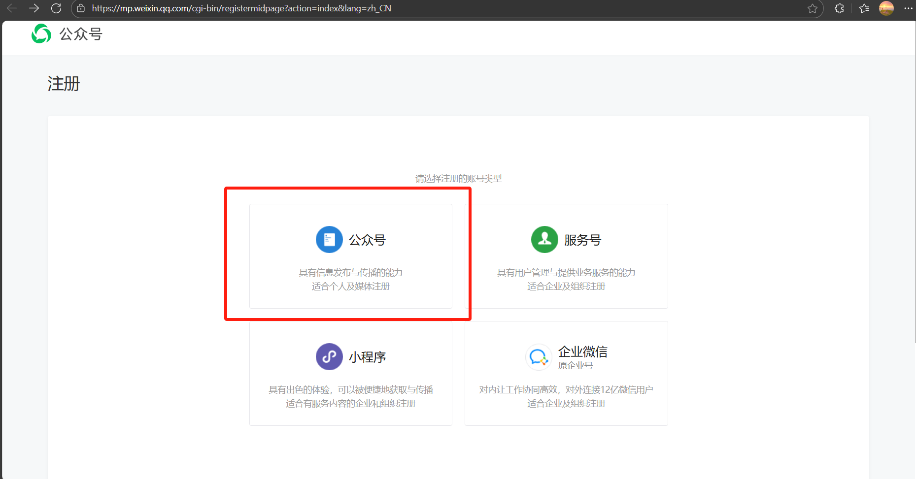 如果需要批量分类下载功能,请使用本项目,您需要先前往以下网址注册一个“微信公众账号”:https://mp.weixin.qq.com/cgi-bin/registermidpage?action=index&lang=zh_CN