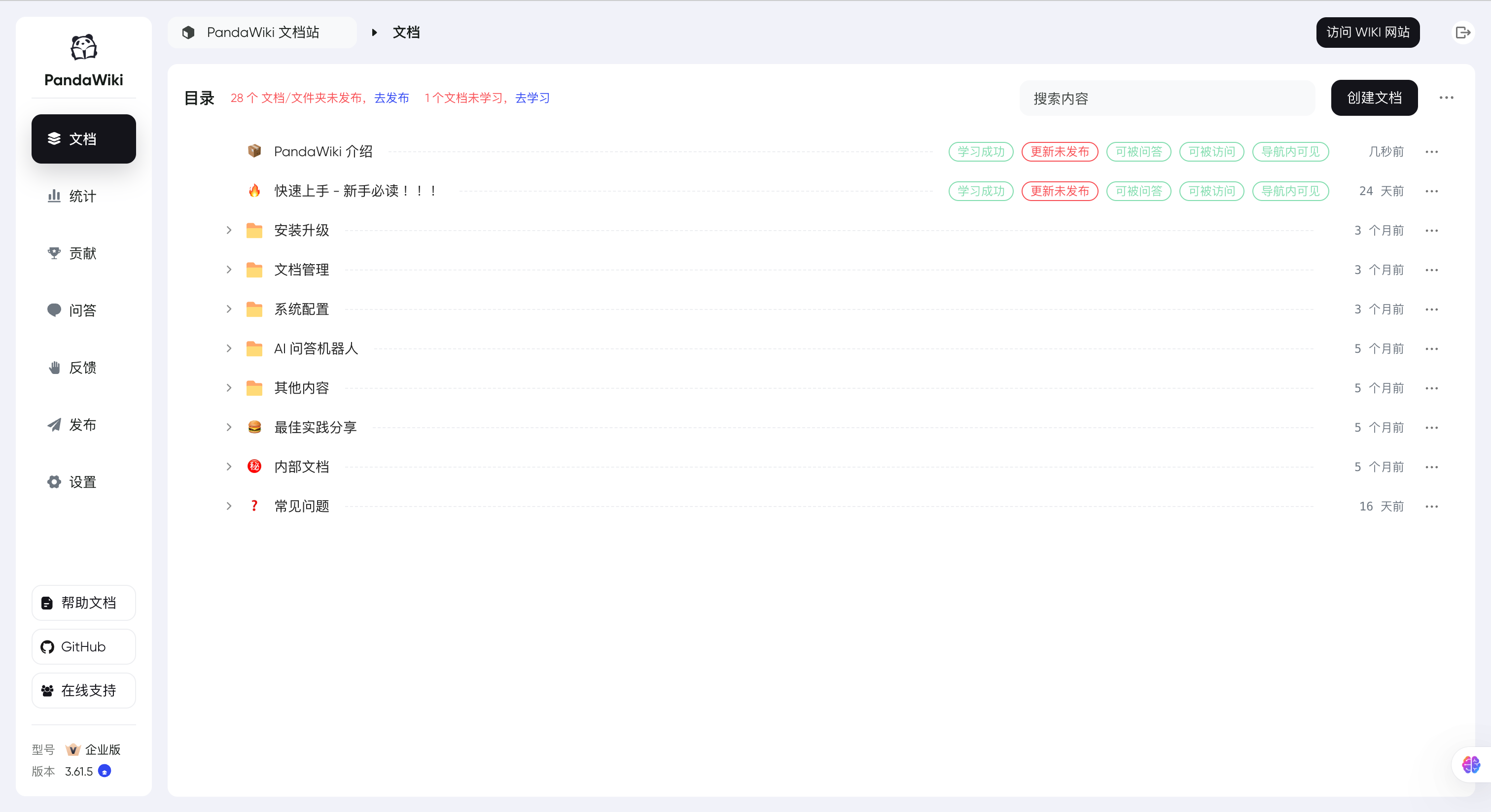 分享一个小团队的实操落地案例,我们是10人左右的SaaS产品开发团队,此前产品文档、技术手册、售后FAQ分散在飞书文档、GitHub Wiki、本地存储介质中,形成了数据孤岛,新员工入职需要跨平台翻找资料,上手周期长,老员工也常被重复的技术咨询困扰。基于系统搭建私有化统一知识库后,我们将全量知识内容做结构化整合与分类归档,通过AI创作模块快速完善标准化FAQ体系,同时完成飞书与企业微信的多端智能问答机器人集成。现阶段新员工可通过AI问答快速检索学习产品核心功能与技术架构,上手时间从原本的一周缩短至两天;售后与技术支持同事从重复的基础问题解答中解放,专注于复杂问题处理,团队整体工作效率提升超40%。且系统的部署门槛极低,基于官方提供的Docker一键部署脚本,在Linux服务器上完成环境拉取与容器化部署仅需数分钟,非专业运维人员也能轻松操作。