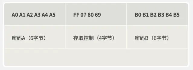 4)每个扇区的块3为控制块:包括了密码A、存取控制、密码B。