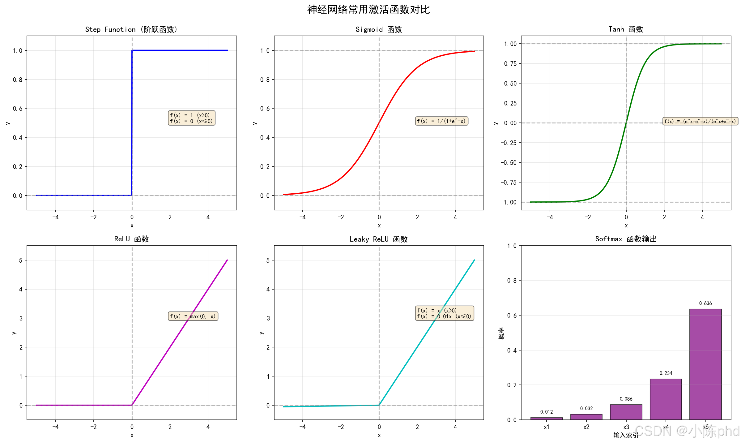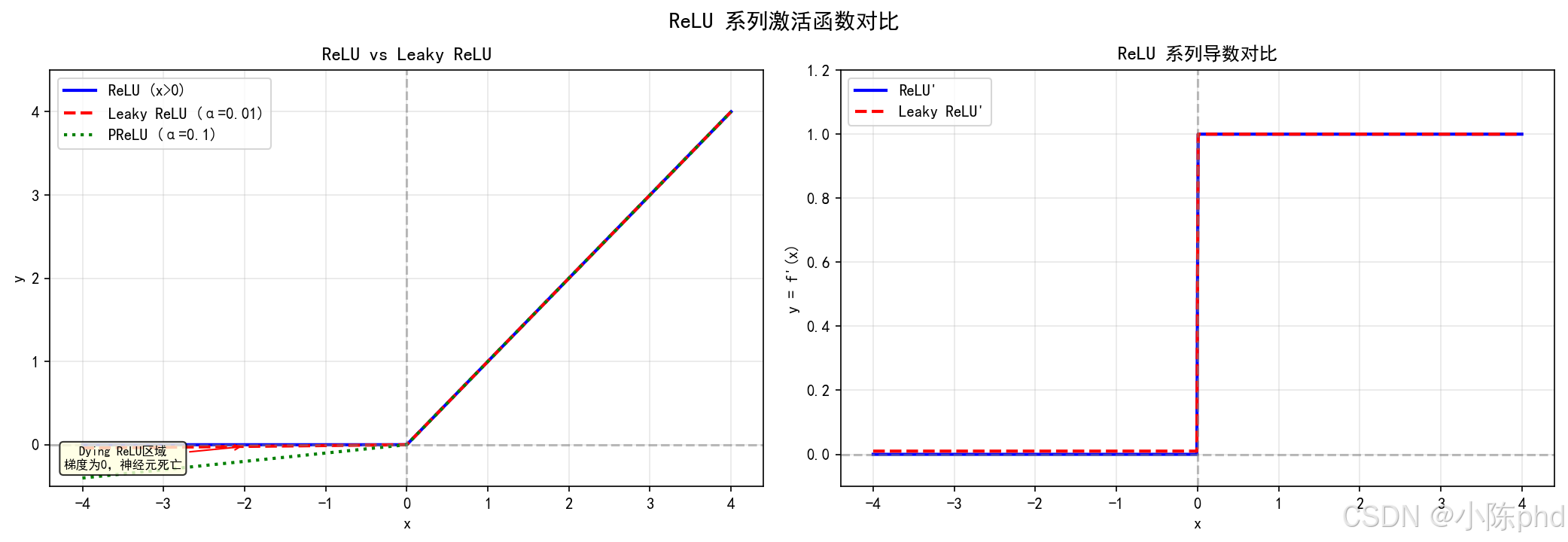 图中概览了常见激活的形态与梯度特性,可直观看到哪些激活更容易出现梯度饱和或稀疏。