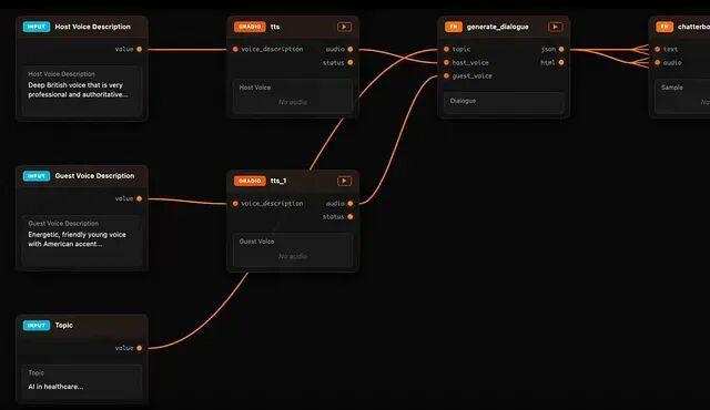 每个节点代表一次计算操作,可以是 Gradio Space API 调用、Hugging Face 推理请求,或普通的 Python 函数。节点通过输入端口和输出端口定义接口,数据沿着端口之间的连接流动。