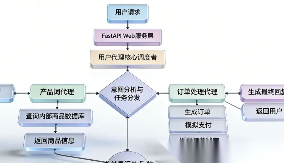 本文聚焦于LLM(大型语言模型)驱动的电商多智能体客服系统的设计与实现,核心是通过LangChain框架构建分工明确的智能体模块,结合FastAPI实现服务化封装,完成商品查询、订单创建等全流程的智能化处理。该方案已在实际电商业务场景中得到验证,能够精准解析用户模糊意图,高效完成多环节任务协作。