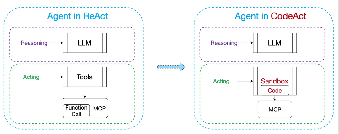 虽然当前Agent框架发展从ReAct模式逐渐融合CodeAct模式,但是Agent框架本质的推理与执行功能并没有变化。