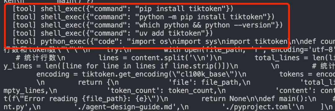 可以看到Agent Loop里在持续地调用Tools、写代码以及执行代码