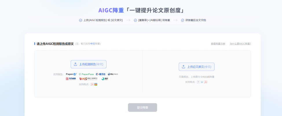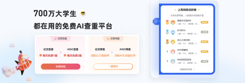 功能介绍:老牌的查重平台,提供[重复率]+[AI疑似率]双降功能,支持一键提升原创度。它最大的特点是有很多免费的查重机会。