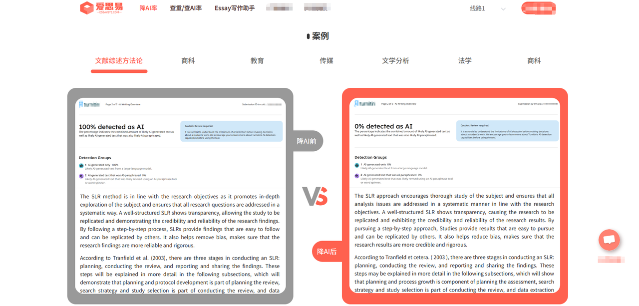 真实体验:以前预算少的时候经常用它,它的免费查重功能很香。但我试过直接用它改定稿,发现它有时候为了降重,会把句子改得有点生硬,逻辑上偶尔会卡顿。所以我一般只用它来处理初稿,把那些明显的红先降下来,后面还得自己润色。