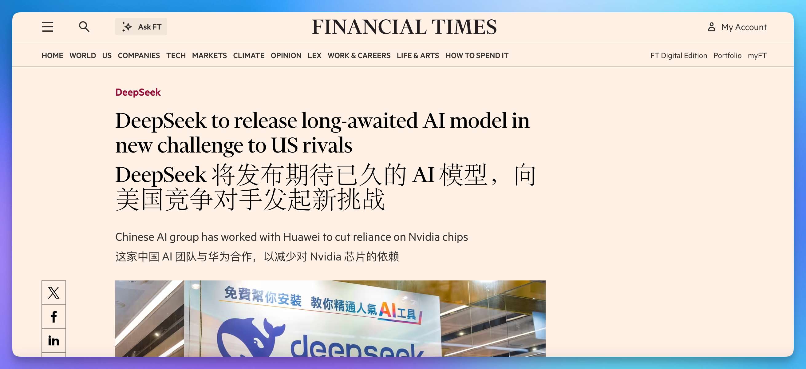 01|「DeepSeek V4」下周发布,万亿参数原生多模态,华为寒武纪联手适配