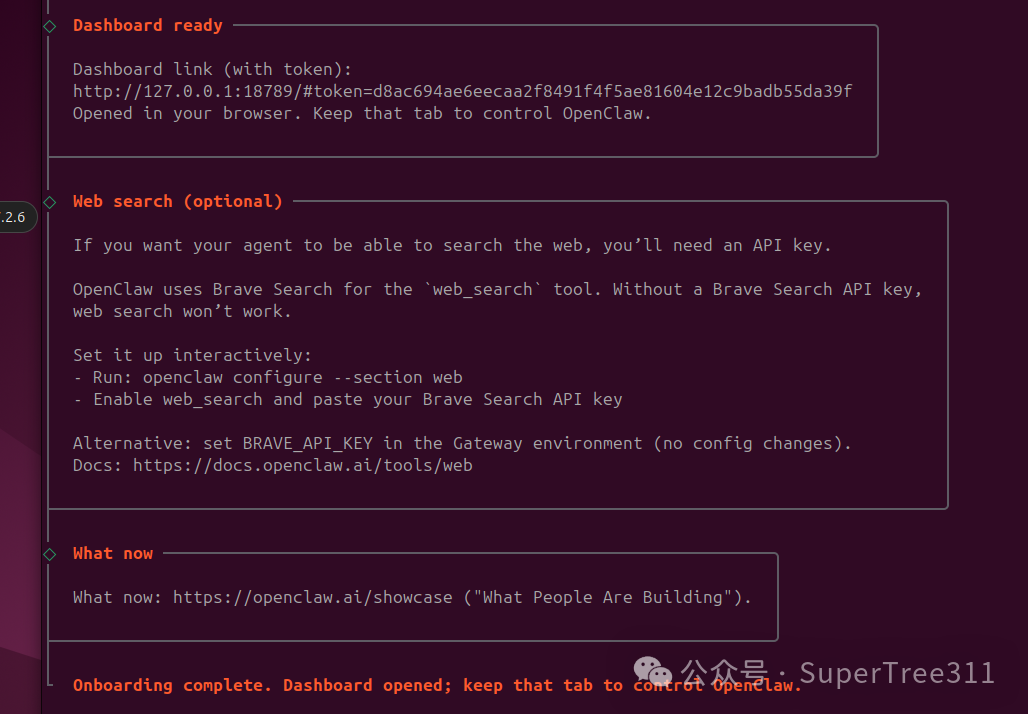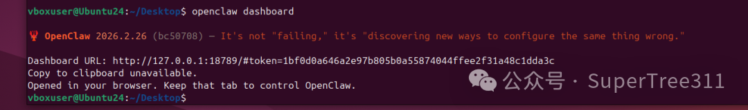确保服务都启动以后,运行openclaw dashboard