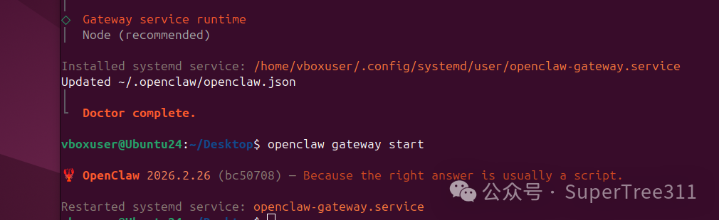 这样就配置完成了。但openclaw还没有启动,需要安装并启动openclaw gateway。