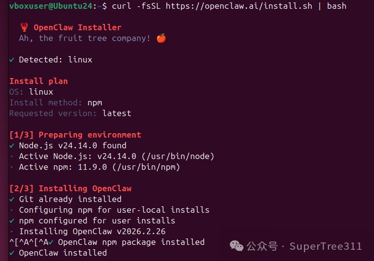 Ubuntu 虚拟机安装 OpenClaw