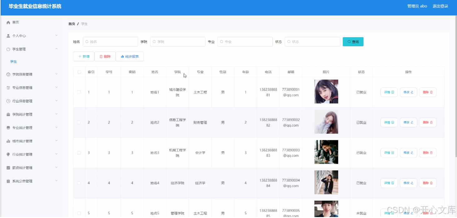 图5-11学院统计管理界面图