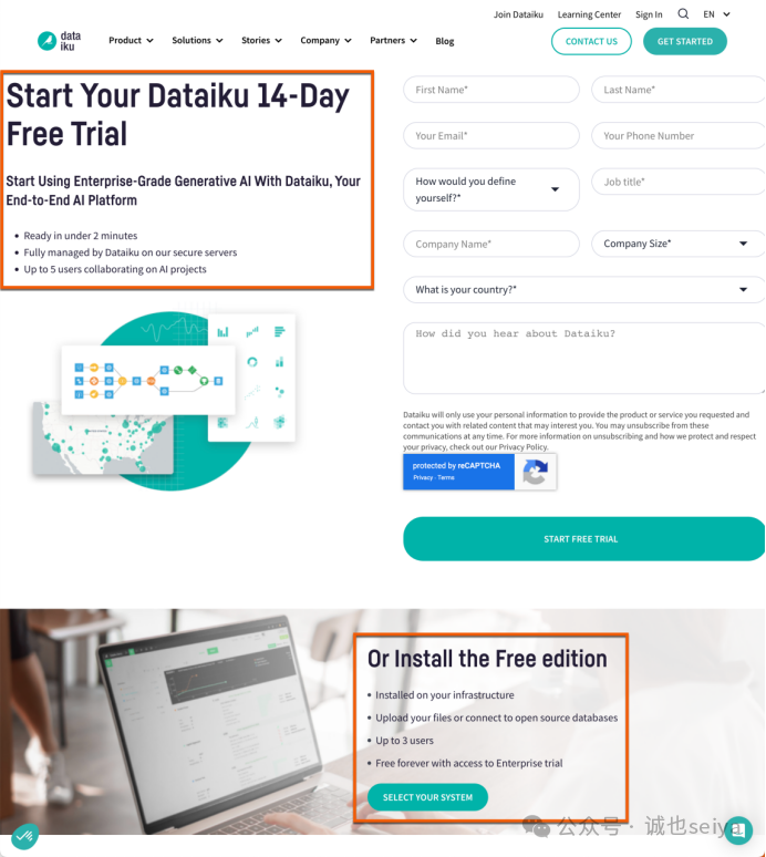 注意:如果你还没有访问权限,可以通过Dataiku 官网 以两种方式开始: