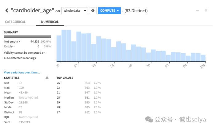 重要提示 在全量数据模式下切换列时,需再次点击窗口顶部的 Compute 才能显示新一列的全量分析结果(样本模式下则是自动计算的)。