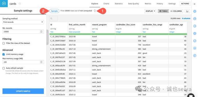 处理大数据集时,Dataiku 不会一次性显示所有数据,而是显示一个较小的样本(Sample),以确保操作流畅且响应迅速。