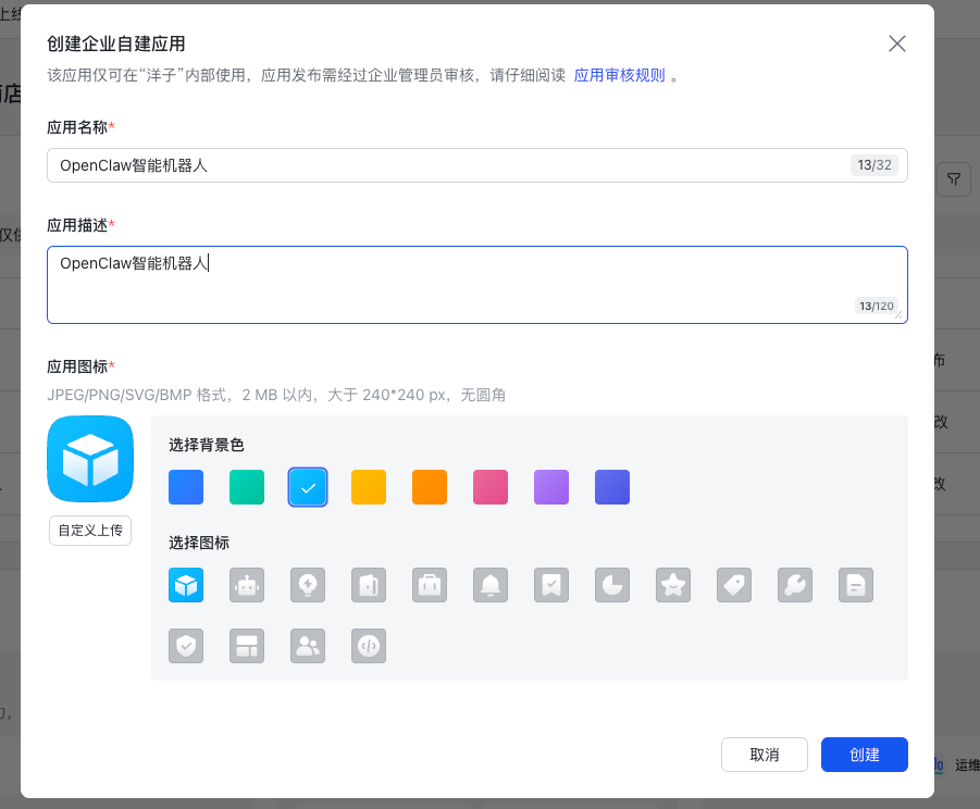 2.2 创建企业自建应用