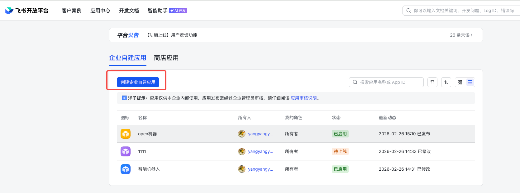 2.1 进入飞书开放平台