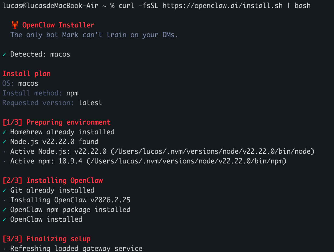 curl -fsSL https://openclaw.ai/install.sh | bash