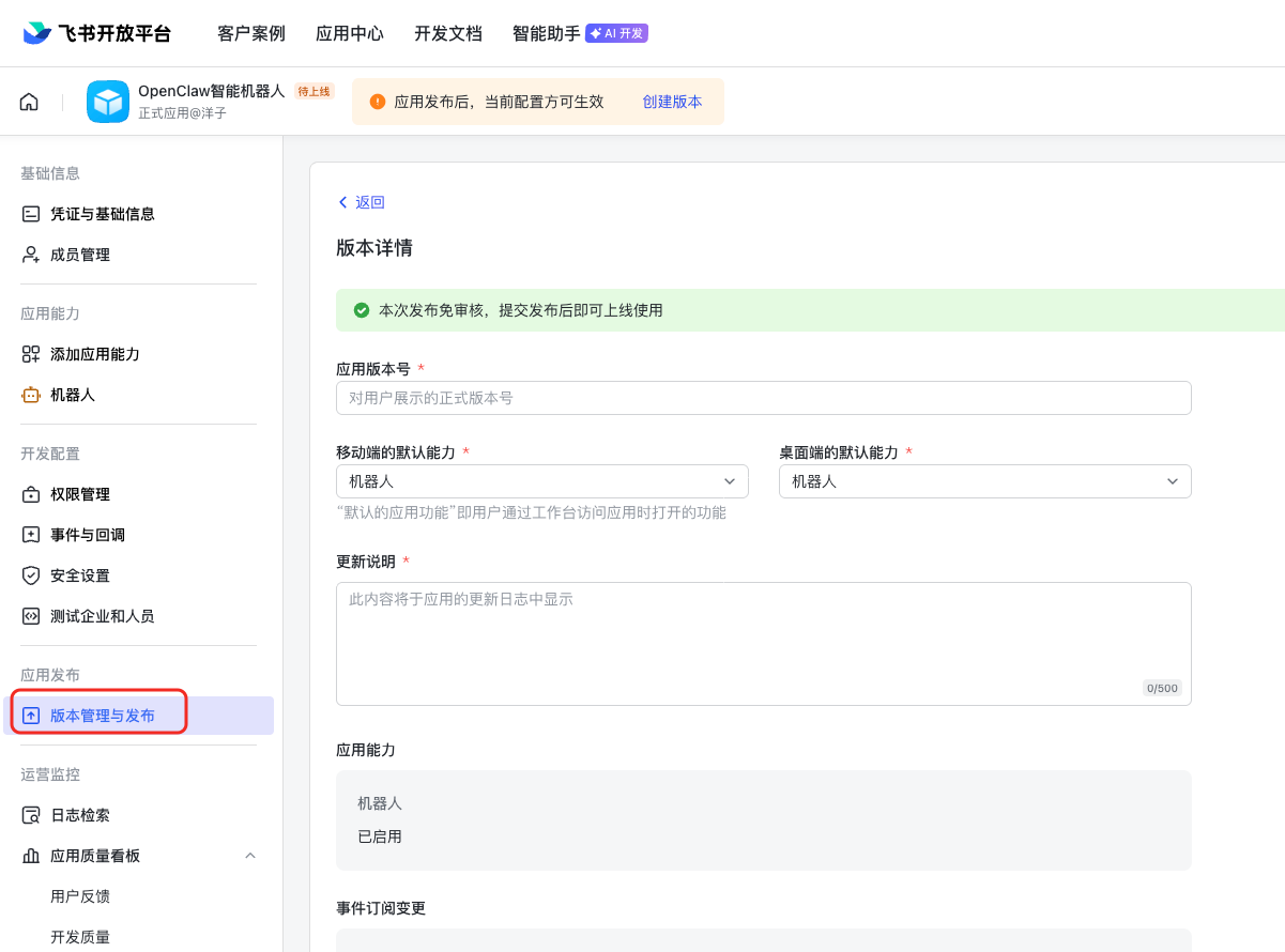 权限配置 - 步骤3 发布应用