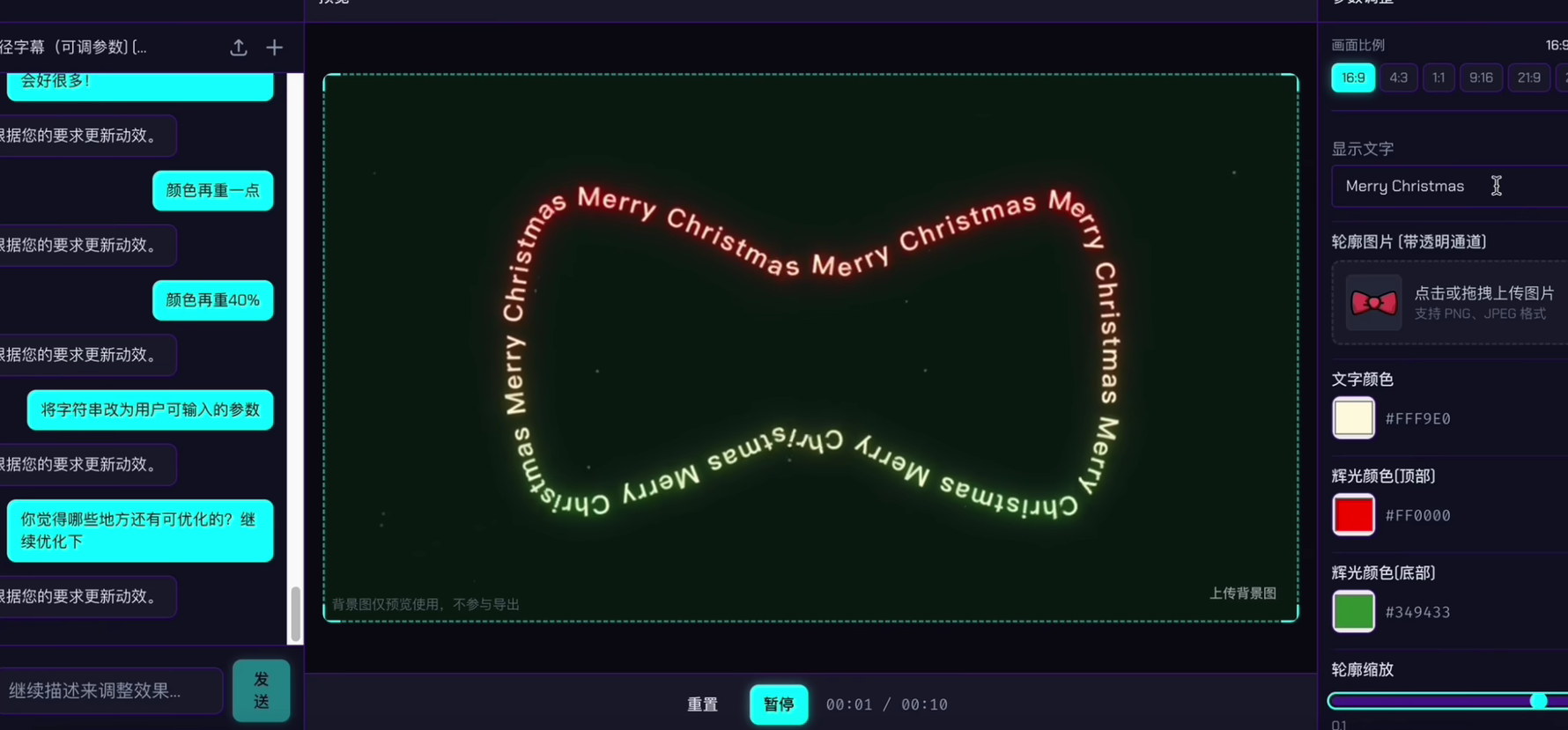 LLM根据效果语义智能声明可调整参数,用户通过参数面板实时调整: