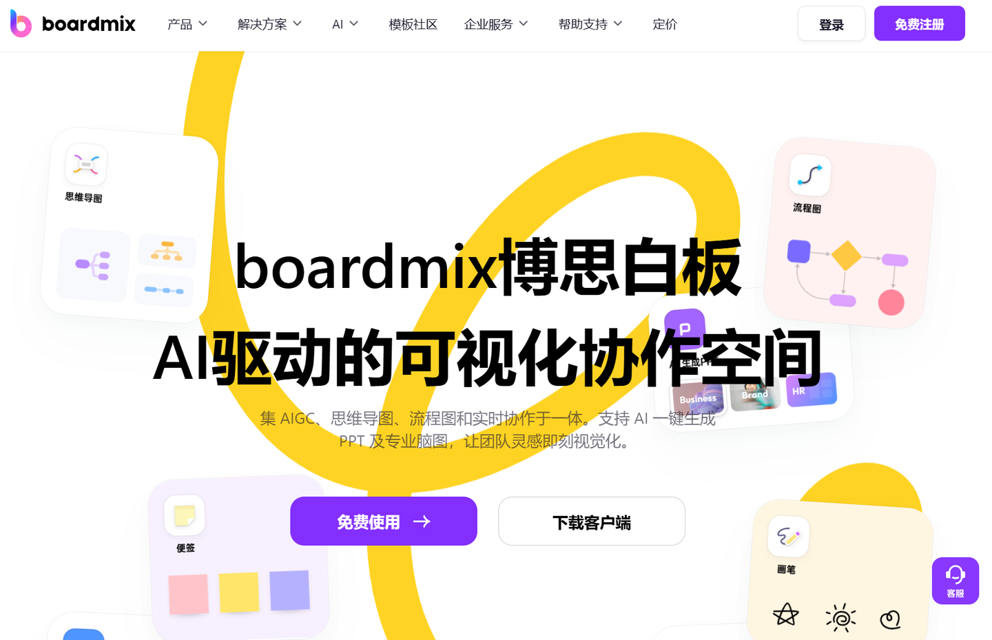 boardmix 博思白板是一款集 AI 绘图、团队协作、白板创作于一体的工作流程图生成器,主打多人实时协作,适合团队共同梳理流程、脑暴项目规划,是我在团队工作中常用的绘图工具。