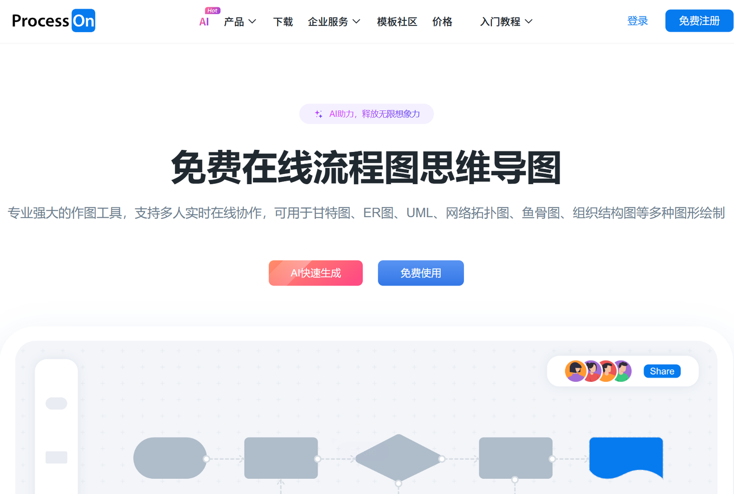 四、ProcessOn—— 专业在线协作工作流程图生成器